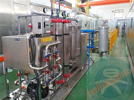电泳涂装生产线是将被涂物浸渍在水溶性涂料中作为阳极(阳极电泳),另设一与其相对应的阴极,在两极间通直流电,靠电流所产生的物理化学作用,使涂料均匀涂在被涂物上的一种涂装技术;电泳涂装必须使用电泳漆,电泳漆通常又称水溶性涂料,电泳漆与蒸馏水必须按一定比例进行稀释,才能使用。