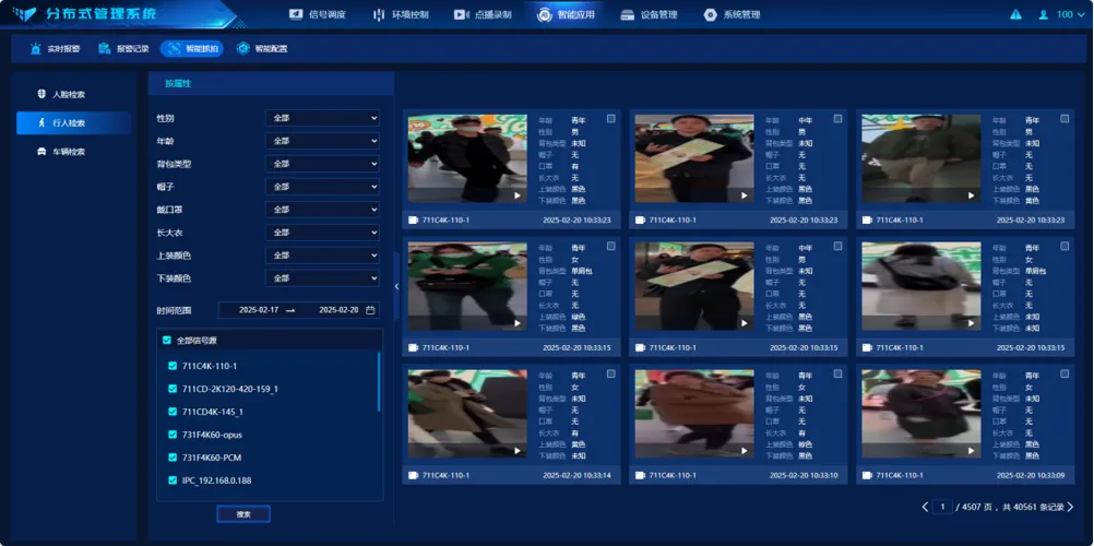 分布式综合管理平台V3.6通过强化AI功能模块,新增布防设置、人脸抓拍、行人抓拍及车辆识别抓拍等智能化工具,可对50余类场景实施全天候实时监测与精准分析,覆盖人体属性检测、区域入侵、人群密度超限、人流跨线、明火监测、车辆违停等典型安防场景。系统支持多维度报警联动机制,当监测到异常情况时,可通过平台实时弹窗告警、IP广播语音播报、短信通知以及应用端推送等组合方式,快速触发多级响应流程,为公安部门争取黄金处置时间。