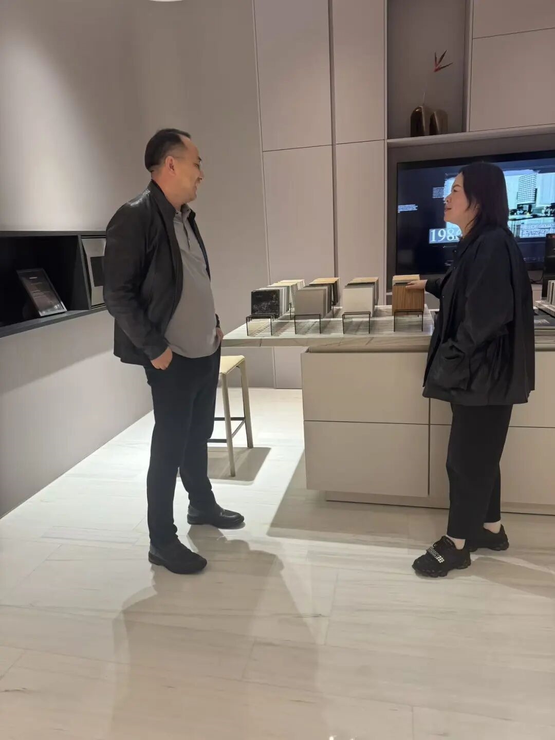 在零售总经理叶悠茹的引导下,杜佳峰秘书长实地参观了位于红星美凯龙 1 楼主入口核心位置的天益幸福家展厅。展厅内,瑞士劳芬的潮流卫浴、德国当代的经典龙头、意大利 Antoniolupi 的艺术台盆等国际一线品牌产品错落陈列,涵盖卫浴、橱柜、电器、收纳四大核心品类。叶悠茹总经理重点介绍了杜唯淋浴房的静音防尘工艺、比利时阿尔法桑拿房的定制服务,以及天工之作浴室柜的材质创新,这些产品凭借 “美学吸引力 + 功能实用性” 的双重优势,成为宁波高端家居市场的标杆选择。