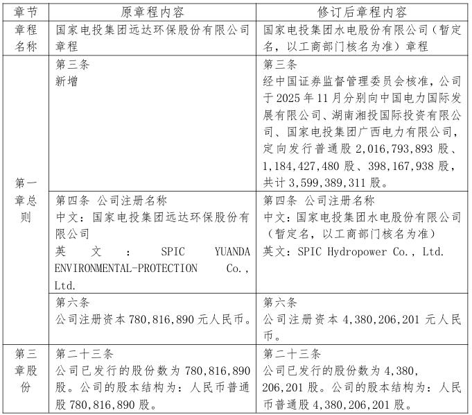 经中国证券监督管理委员会核准,远达环保于2025年11月分别向中国电力国际发展有限公司、湖南湘投国际投资有限公司、国家电投集团广西电力有限公司,定向发行普通股2,016,793,893股、1,184,427,480股、398,167,938股,共计3,599,389,311股。公司总股本将由780,816,890股变更为4,380,206,201股,公司注册资本将由人民币780,816,890元变更为人民币4,380,206,201元。