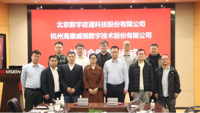 11月24日,北京数字政通科技股份有限公司(以下简称“数字政通”)与杭州海康威视数字技术股份有限公司(以下简称“海康威视”)签署战略合作协议。数字政通高级副总裁赵明明、研发中心副总经理唐念刚、研发中心副总经理李晓晖、采购部经理杨军伟、系统集成部经理平宽,海康威视高级副总裁黄方红、政府业务部总裁王英杰、城管市政行业总经理程佳绩、解决方案经理宋克南、湖北业务中心副总裁袁观显、湖北业务中心副总裁刘洪杰、音频与传感产品业务部产品总监孙兵剑出席签约仪式。