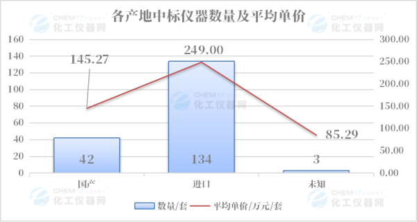 从“各产地中标仪器数量及平均单价”来看,排除未知品牌,国产质谱仪的中标数量为42套,平均中标金额为145.27万元/套;进口质谱仪的中标数量为134套,约占10月份质谱仪中标总数量的74.86%,平均中标金额为249.00万元/套,约是国产质谱仪平均中标单价的1.7倍。国产质谱仪逐渐向中高端市场渗透,未来有望在更多领域与进口质谱仪竞争,进一步缩小价格差距。