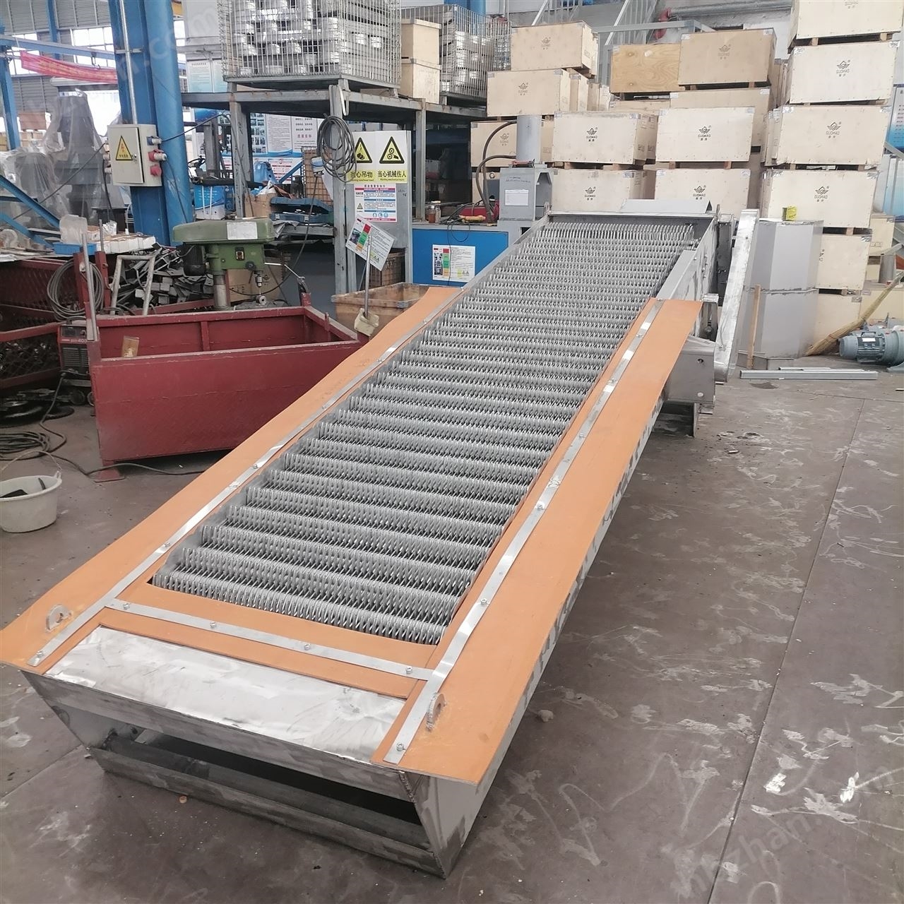 回转式格栅除污机是由一种*的耙齿厂装配成一组回转格栅链。在电机减速器的驱动下,耙齿链进行逆水流方向回转运动。