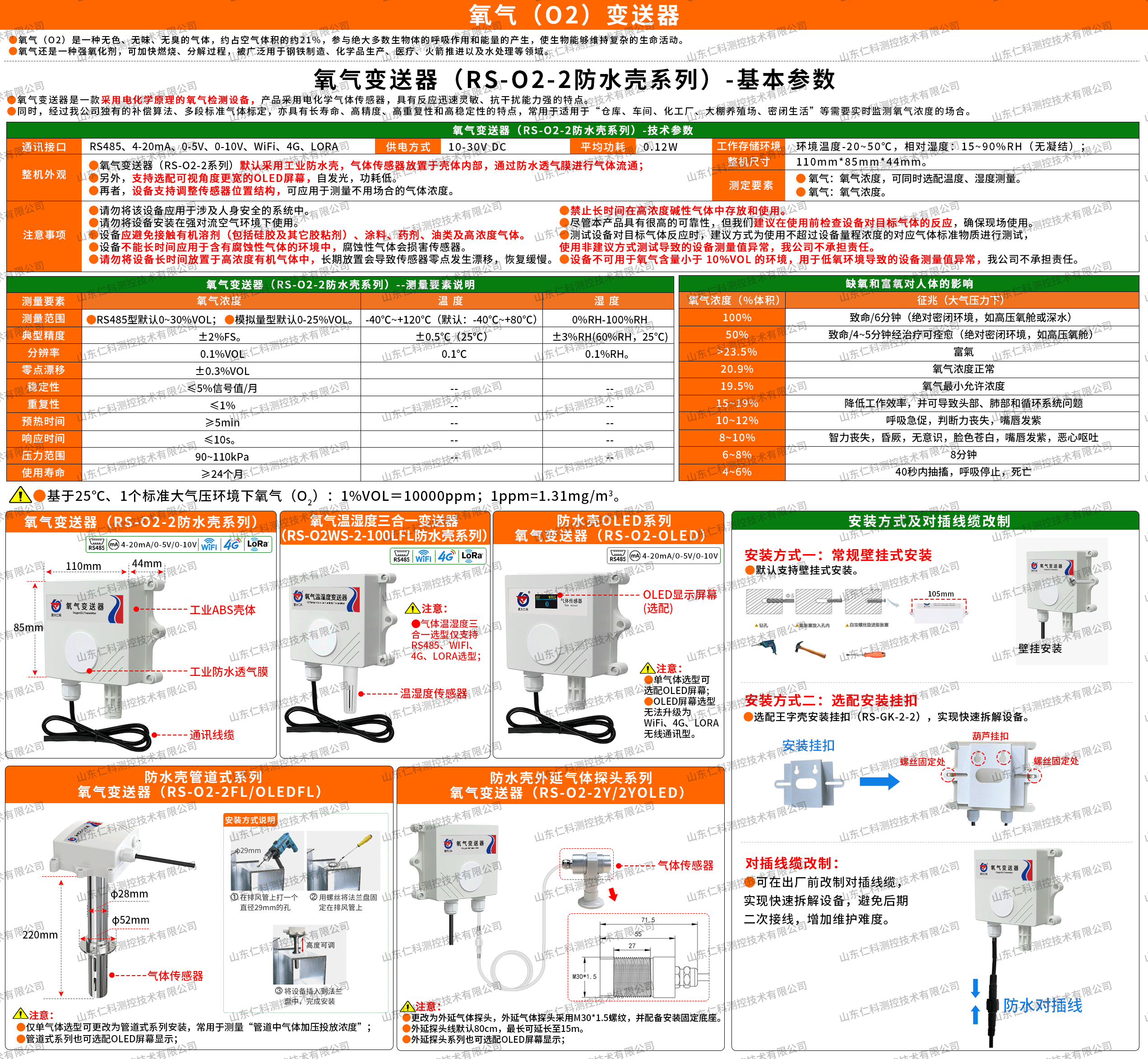 关键技术参数方面,该型号氧气变送器表现优异:温度测量范围为-40℃~+80℃,温度精度达±0.5℃(25℃);湿度测量范围为0~100%RH,湿度精度为±3%RH(60%RH,25℃);工作温度范围为-20~50℃,重复性≤1%,氧气测量精度达±2%FS,能精准捕捉氧气浓度的细微变化,为用户提供可靠的监测数据支持。应用领域十分广泛,适用于仓库、车间、化工厂、大棚养殖场、密闭生活场所等所有需要实时监测氧气浓度的场合,无论是工业生产中的安全防护,还是农业养殖中的环境调控,亦或是密闭空间的安全监测,都能发挥出色的作用。